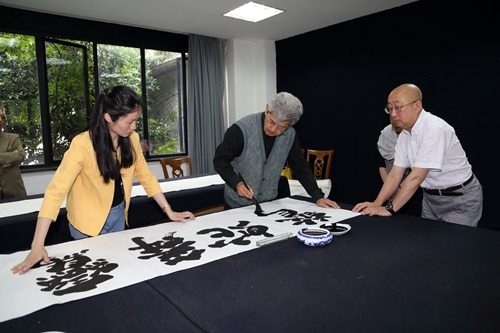 5月5日,日本柳田书道的继承人、柳田泰云的儿子柳田泰山一行17人到我校兰亭书法艺术学院参观交流,兰亭书法学院负责人热情接待了来访客人。