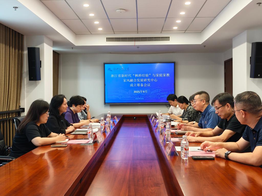 9月23日上午,浙江省新时代“枫桥经验”与家庭家教家风融合发展研究中心成立筹备会议在我校召开。副校长胡云进主持会议,绍兴市妇联主席楼芳、副主席王晶及相关职能处室负责人出席会议,学校相关职能部门负责人及二级学院领导、专家参加会议。