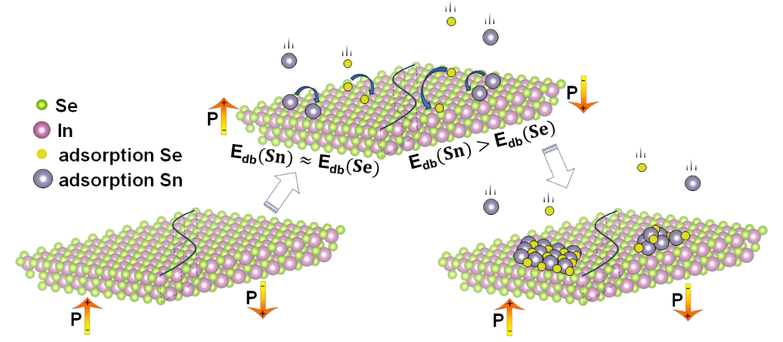 α-的极化场取向调控SnSe薄膜的生长行为示意图