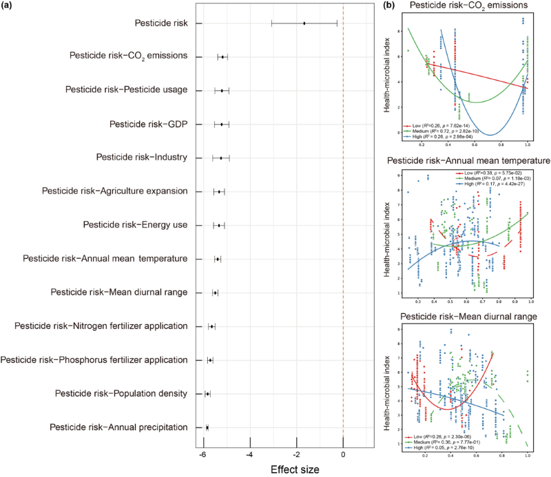 图3. 农药风险与人为因素交互作用对健康-微生物指数的影响