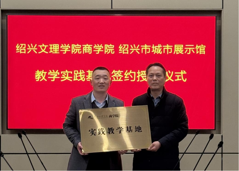 为全面融入地方发展,加强高质量内涵建设,推动管理类专业“本土化”案例教学改革与实践,提升人才培养质量,12月26日,商学院(法学院)与绍兴市城市展示馆举行校外实践教学基地签约授牌仪式。绍兴市城市展示馆馆长喻荣胜、运营负责人张清风,商学院副院长邵青等出席活动。
