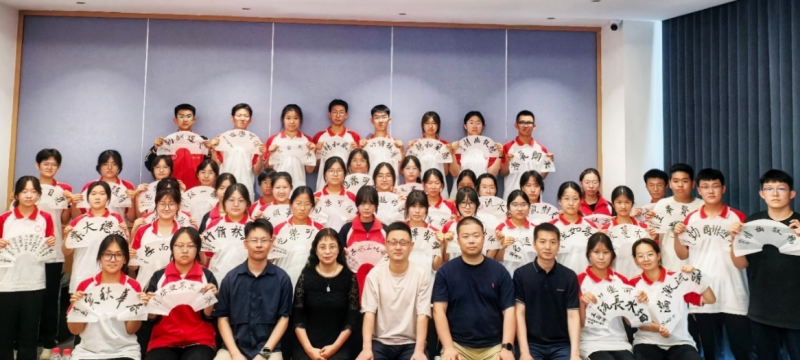 授牌仪式结束后,与会人员实地观摩了乌海一中“思政金句” 书法展示活动,并现场指导了“兰亭扇舞中国风”书扇课堂教学。内蒙古书法家协会会员、乌海一中美术教研组长、兰亭书法艺术学院校友会理事牛耀艇全程参加了活动。