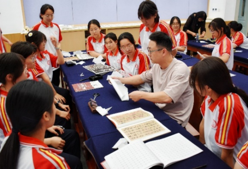 仪式上,陈文龙系统介绍了“兰亭书法学堂”的建设愿景与实施路径。他说,学堂将依托学校深厚资源,深化校际合作,建立共联机制,推动优质书法教育资源共享;积极探索“书法+”跨学科融合教学模式,结合数字技术开发互动体验平台,促进书法艺术在校内外的广泛传播。随后,兰亭书法艺术学院代表正式向乌海一中授牌“兰亭书法学堂”,并赠送了书法教材和教学用具。